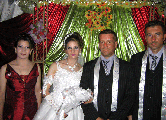 الاكاليل: بغديدا الفرح تحتفل بثلاثة اكاليل اقتبل سر الزواج المقدس عصر اليوم امام مذبح كنيسة الطاهرة الكبرى العروسان: هيثم يعقوب الياس دعبول و لينا عبدالمسيح اسحق للو(برطلة)